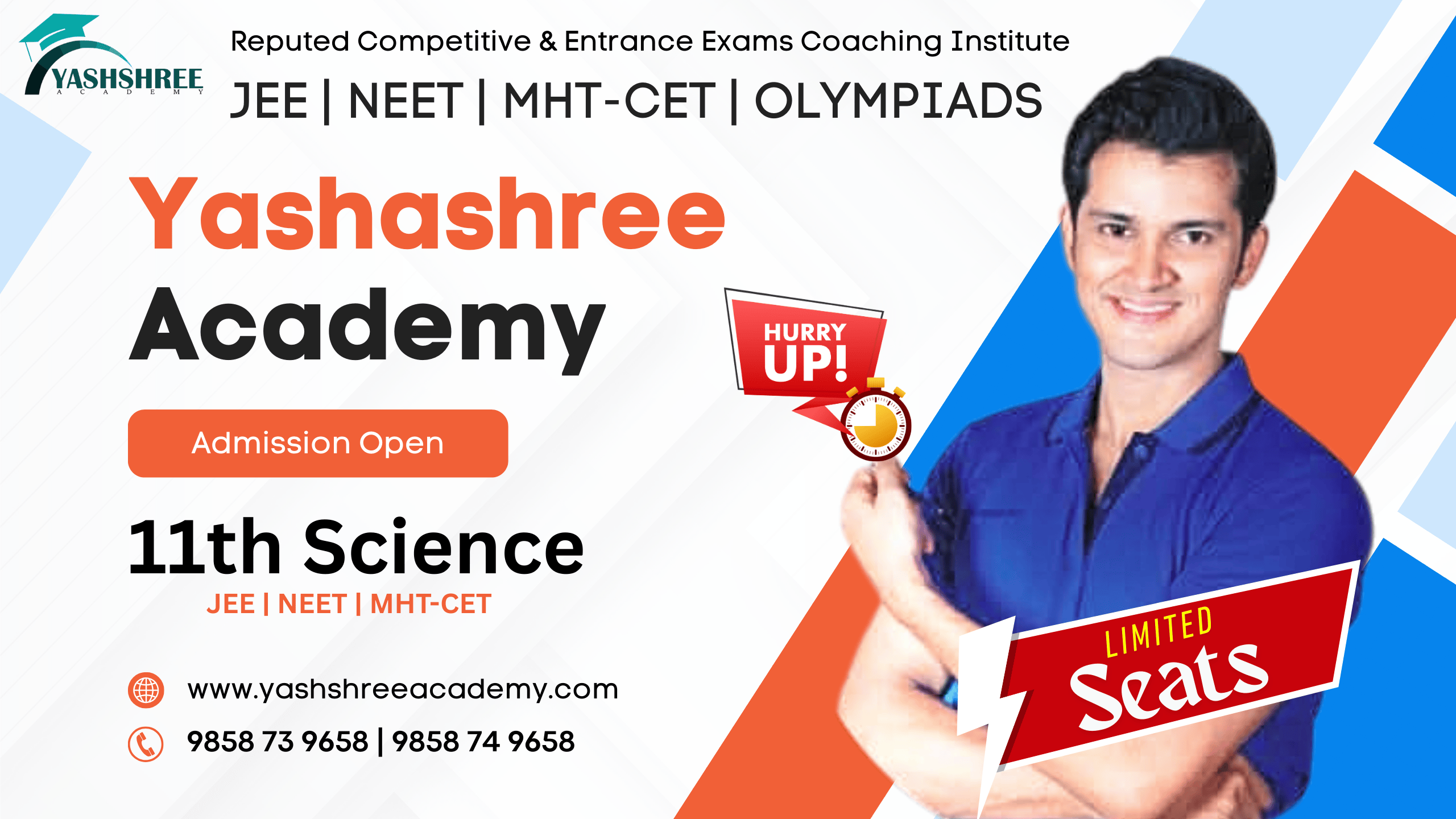 यशश्री अकॅडमी, वाई ही विद्यार्थ्यांना त्यांच्या स्वप्नांची पूर्तता करण्यासाठी मार्गदर्शन करणारी प्रतिष्ठित शिक्षण संस्था आहे. अभियांत्रिकी आणि वैद्यकीय प्रवेश परीक्षांसाठी उत्कृष्ट दर्जाचे शिक्षण देत, अकॅडमीने अनेक विद्यार्थ्यांना यशस्वी करिअर घडविण्यात मदत केली आहे. तज्ञ प्राध्यापकांचे मार्गदर्शन, प्रभावी अध्यापन पद्धती आणि सातत्यपूर्ण मेहनतीच्या जोरावर, यशश्री अकॅडमी विद्यार्थ्यांना त्यांच्या उज्ज्वल भविष्यासाठी सक्षम करत आहे.